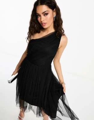 Esclusiva Pieces Petite – Vestito Corto Con Dettaglio A Fiocco, Colore Nero E Rosa