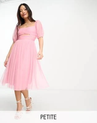 ASOS DESIGN Petite – Vestito Skater Corto In Organza Verde Ricamato Con Inserto In Pizzo
