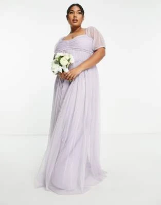 ASOS Edition Curve – Vestito Corto Con Maniche A Campana E Corpetto Ricamato Giallo