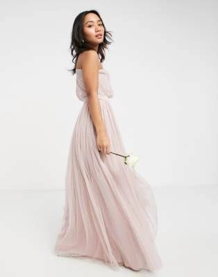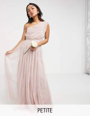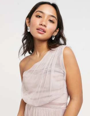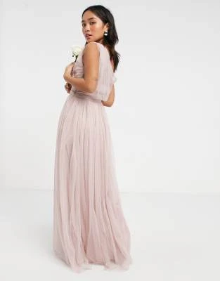 ASOS DESIGN Petite – Vestito Lungo A Pieghe E Balze Verde Salvia Con Scollo Profondo