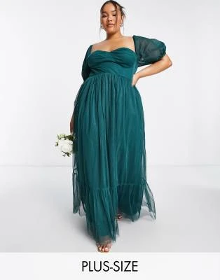 ASOS EDITION Curve – Vestito Lungo Allacciato Al Collo Con Arricciature In Raso Verde Salvia