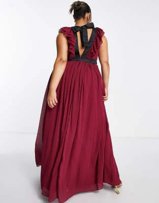 TFNC Plus – Vestito Lungo Da Damigella Rosso Con Maniche Con Volant