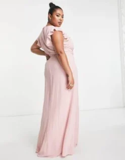 TFNC Plus – Vestito Lungo Da Damigella Rosa Cipria Con Maniche Con Volant