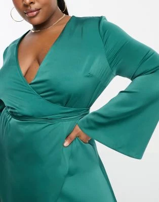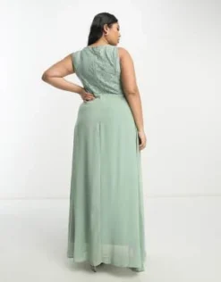 Vila Curve – Vestito Lungo Da Damigella Verde Salvia Con Corpino In Pizzo