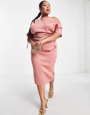 ASOS DESIGN Curve – Vestito Midi In Raso Nero Con Taglio Sbieco E Laccetti