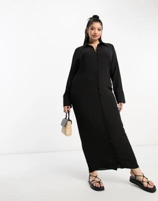 ASOS DESIGN Curve – Vestito Lungo Nero Con Taglio Sbieco E Maniche Ad Aletta