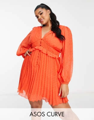 ASOS Edition Curve – Vestito Corto Con Maniche A Campana E Corpetto Ricamato Giallo