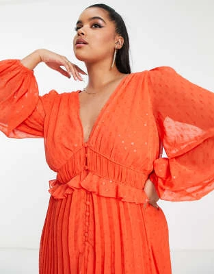 ASOS DESIGN Curve – Vestito Lungo Con Scollo Alla Bardot Plissettato Color Salvia – LGREEN