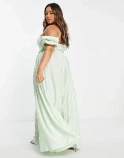 ASOS DESIGN Curve – Vestito Lungo Con Scollo Alla Bardot Plissettato Color Salvia – LGREEN