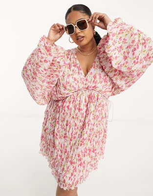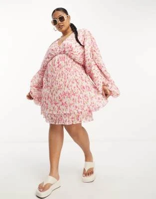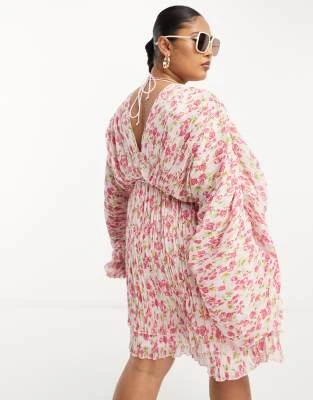 Flounce London Plus – Vestito Lungo Con Maniche Con Volant E Scollo Profondo In Raso Rosa Vivace