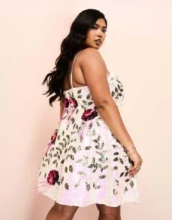 ASOS LUXE Curve – Vestito Corto Da Cerimonia Con Paillettes E Fiori Multicolore