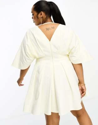 ASOS DESIGN Curve – Vestito Skater Midi Morbido Ricamato Con Godet E Maniche Svasate Nero
