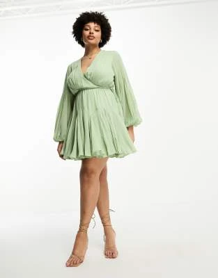 ASOS EDITION Curve – Vestito Lungo Allacciato Al Collo Con Arricciature In Raso Verde Salvia
