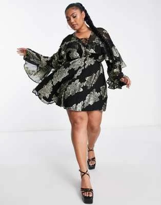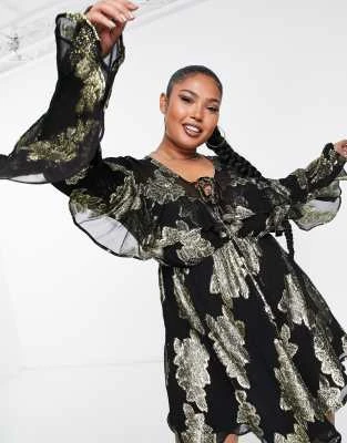 Hope & Ivy Plus – Vestito Midi Giallo E Verde A Fiori Con Laccio Avvolgente