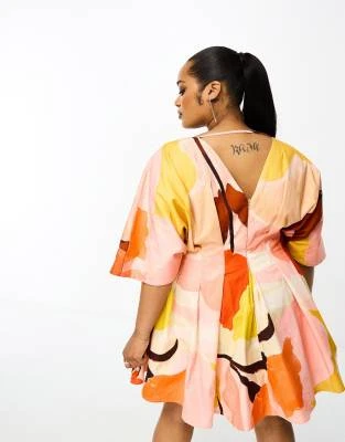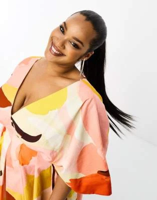 ASOS Edition Curve – Vestito Corto Con Maniche A Campana E Corpetto Ricamato Giallo