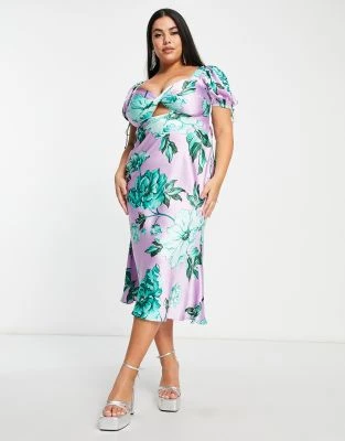 ASOS Maternity ASOS DESIGN Maternity – Vestito Midi Lilla Con Scollo Ad Anello E Maniche Con Volant