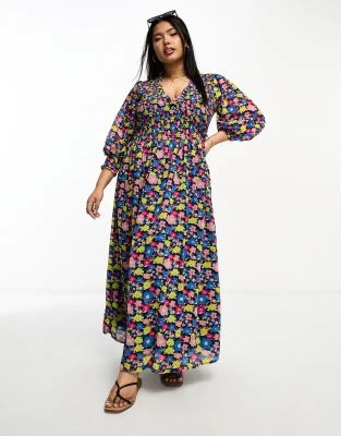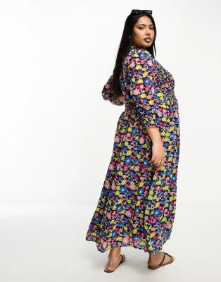ASOS Maternity ASOS DESIGN Maternity – Vestito Midi Lilla Con Scollo Ad Anello E Maniche Con Volant