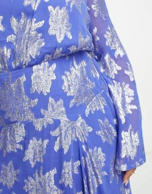 Topshop Curve – Vestito Da Cerimonia Midi In Raso A Fiori Blu