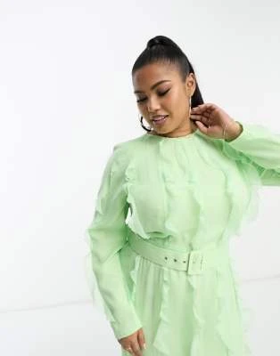 ASOS Edition Curve – Vestito Corto Con Maniche A Campana E Corpetto Ricamato Giallo