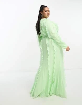 ASOS DESIGN Curve – Vestito Lungo Nero Con Taglio Sbieco E Maniche Ad Aletta