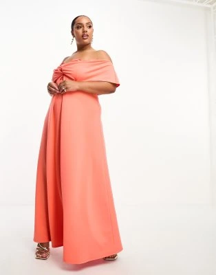 River Island Plus – Vestito Midi Beige Con Volant E Scollo Bardot