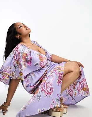 ASOS Edition Curve – Vestito Corto Con Maniche A Campana E Corpetto Ricamato Giallo