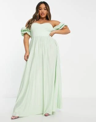 Forever New Curve – Vestito Midi Con Vita A Balze, Ruches E Glitter Oro Rosa