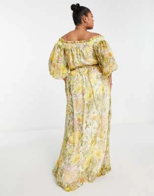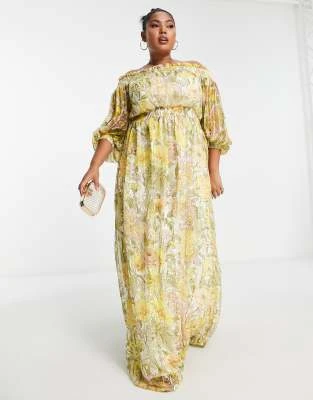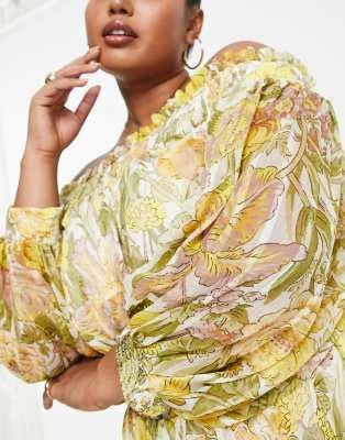 Hope & Ivy Plus – Vestito Midi Giallo E Verde A Fiori Con Laccio Avvolgente