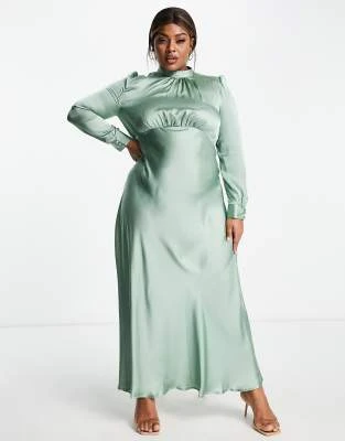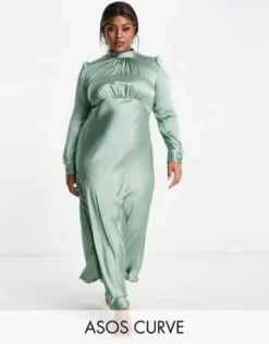 ASOS DESIGN Curve – Vestito Lungo Con Scollo Alla Bardot Plissettato Color Salvia – LGREEN