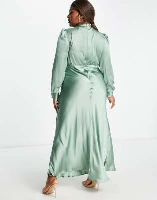 Flounce London Plus – Vestito Lungo Con Spalline Sottili E Volant In Raso Kaki