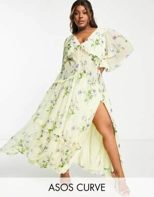 ASOS DESIGN Curve – Vestito Lungo Nero Con Taglio Sbieco E Maniche Ad Aletta