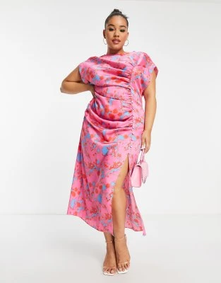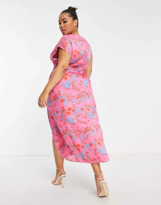 Hope & Ivy Plus – Vestito Midi Giallo E Verde A Fiori Con Laccio Avvolgente
