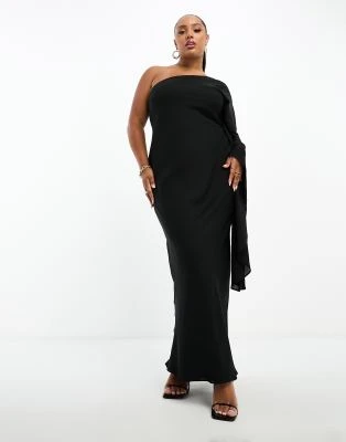ASOS DESIGN Curve – Vestito Lungo Con Scollo Alla Bardot Plissettato Color Salvia – LGREEN