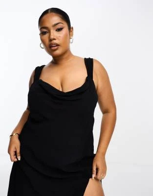 ASOS EDITION Curve – Vestito Lungo Con Scollo Squadrato In Raso Blu Crepuscolare