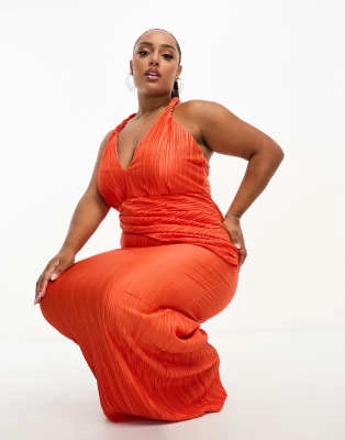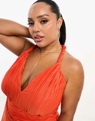 ASOS DESIGN Curve – Vestito Lungo Con Scollo Alla Bardot Plissettato Color Salvia – LGREEN