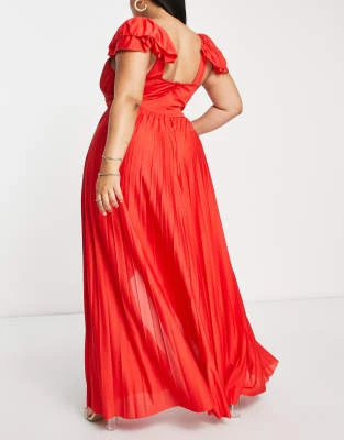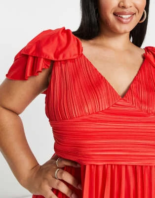 TFNC Plus – Vestito Lungo Da Damigella Rosso Con Maniche Con Volant