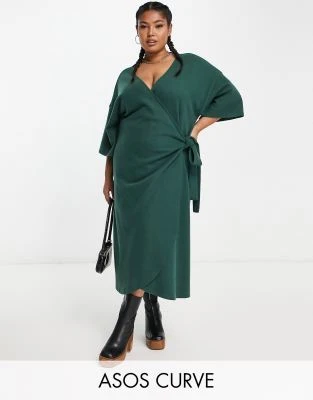 ASOS Maternity ASOS DESIGN Maternity – Vestito Midi Lilla Con Scollo Ad Anello E Maniche Con Volant