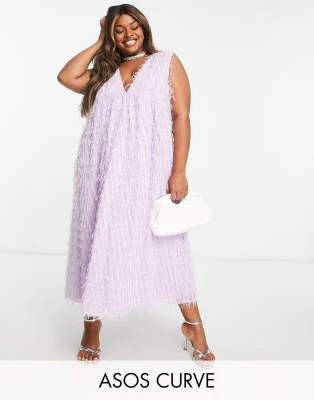 ASOS DESIGN Curve – Vestito Skater Midi Morbido Ricamato Con Godet E Maniche Svasate Nero