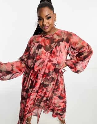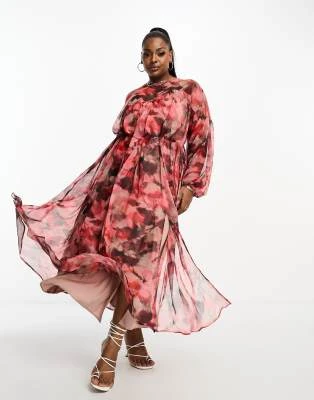Topshop Curve – Vestito Da Cerimonia Midi In Raso A Fiori Blu