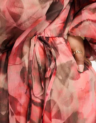 Hope & Ivy Plus – Vestito Midi Giallo E Verde A Fiori Con Laccio Avvolgente