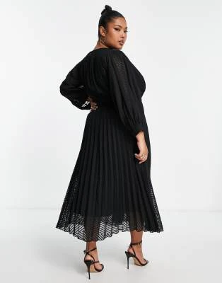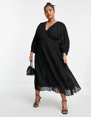 ASOS DESIGN Curve – Vestito Skater Midi Morbido Ricamato Con Godet E Maniche Svasate Nero