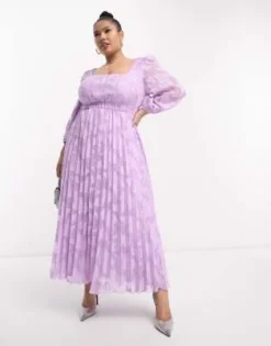 Flounce London Plus – Vestito Lungo Con Maniche Con Volant E Scollo Profondo In Raso Rosa Vivace