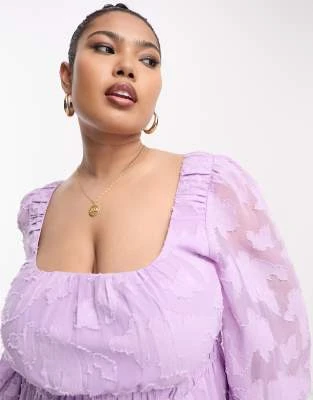 ASOS LUXE Curve – Vestito Midi Decorato Bianco E Blu A Fiori Con Maniche A Sbuffo