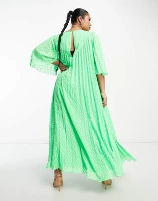 ASOS EDITION Curve – Vestito Lungo Allacciato Al Collo Con Arricciature In Raso Verde Salvia