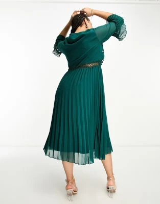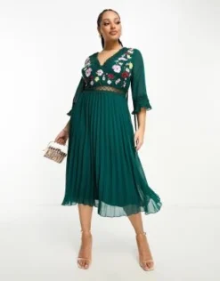 Vila Curve – Vestito Lungo Da Damigella Verde Salvia Con Corpino In Pizzo
