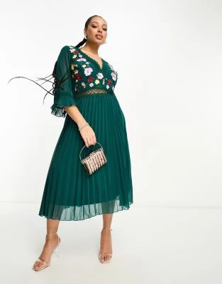 ASOS DESIGN Curve – Vestito Skater Midi Morbido Ricamato Con Godet E Maniche Svasate Nero