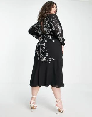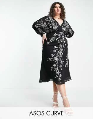 ASOS DESIGN Curve – Vestito Lungo Nero Con Taglio Sbieco E Maniche Ad Aletta