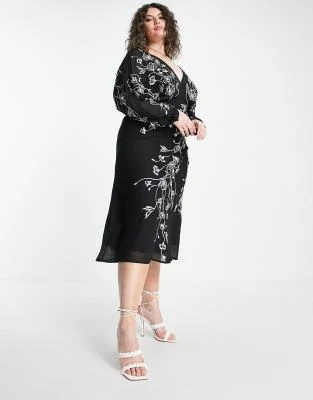 Topshop Curve – Vestito Da Cerimonia Midi In Raso A Fiori Blu