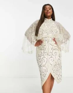 ASOS DESIGN Curve – Vestito Skater Midi Morbido Ricamato Con Godet E Maniche Svasate Nero