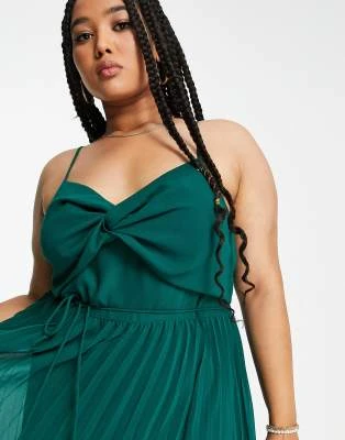 Flounce London Plus – Vestito Lungo Con Spalline Sottili E Volant In Raso Kaki
